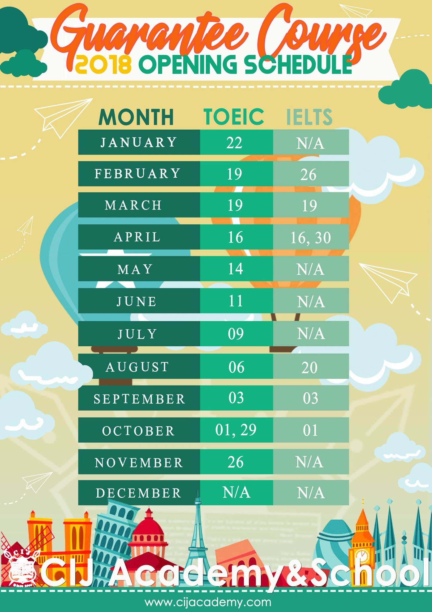 大変お待たせしておりました、2018年度 POWER TOEIC・POWER IELTS Guarantee(点数補償)コースの入学日日程が決まりました。