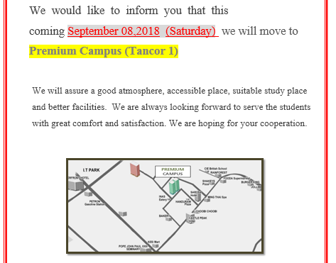 9月のプレミアムークラシックキャンパス統合移転のお知らせ