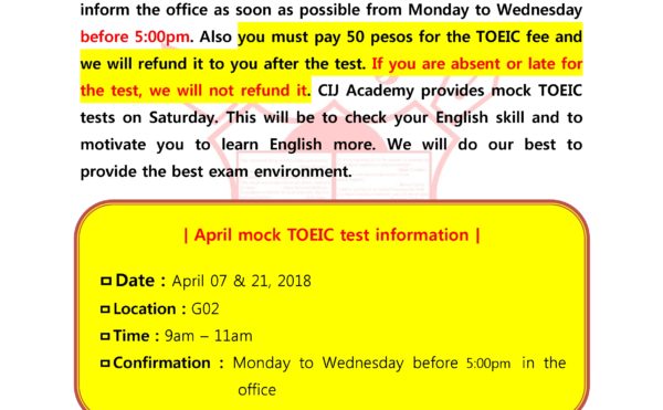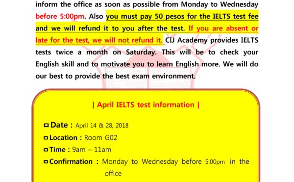 您好: 我們是CIJ語言學校。 這一周,是孩子們認真學習、讀書的一周 有些孩子仍然覺得生活在這裡很艱辛,但大部分孩子都蠻適應日常生活。感謝您鼓勵的郵件,有了家長的支持,我們的孩子能夠學校適應的更好。 那麼讓我告訴您本週的周末的行程。 和往常一樣,星期六我們會睡得很好,如此一來孩子們的疲倦可以在周末得到緩解,早上8點吃完美味的早餐後,我們將與本土英語老師一起準備“英語演講準備”將在星期天上午9點會發表。上周有很多學生發表演講時而覺得害羞。這周我們與他們一起做準備,讓他們度過愉快的時光。 。 本週,對於過去一周生活艱苦的孩子們,我們準備特別的餐點及water park玩水,讓孩子們可以減輕一周的壓力。 午餐將送到菲律賓一家頗受歡迎且有經營許可證的餐廳“Shakey’s Pizza”,我們將與孩子最愛的PIZZA、雞肉、義大利麵一同同樂。孩子多愛這些食物我已經在腦海中有畫面了。 ^。^ 午餐後,我們將前往本週的戶外活動“SKY Water Park”享受游泳樂趣。 Sky Water Park是一個水上樂園,位於宿務區中心的酒店大樓內,可以看見宿務市和麥克坦島的景色,必定能在這有許多愉快的回憶。我們將會管理孩子們,讓他們有一個安全和愉快的時光。 在SKY Water Park度過了愉快的時光後,為購物時間,對女孩來說這是他們最喜愛的時間。本週的購物將在位於SKY Water Park建築中的購物中心“J-Center Mall”購物。購物時孩子將分組進行並且有老師的帶領下安全地進行購物。購物後,孩子們將在老師的指引下回到語言學校。在短暫的休息及晚餐時間之後,為電影欣賞時間。這是本週最需要等待的時間。當孩子們正與父母通電話時,我們會在一旁等待孩子打完電話。之後,孩子在進入夢鄉前會有英語作文寫作及自己運用的時間。 星期天就像是上週,在上午8點過後,我們有一個扎實的早餐時間。前一天孩子們早睡覺,我想我孩子們精神應該恢復的不錯,對吧?從上午9點開始,我們的孩子將進行“水平測試”時間,這是本週最緊張的時間。只要水平測試時間,所有的孩子都非常安靜因為專注於考試。我希望我們的孩子在這個水平測試中取得好成績。經過緊張的水平測試時間後休息一下,接下來享用美味的午餐。 在今天下午之後,我有一個令人興奮的課程“流行歌曲時間”與本土英語教師,孩子的聲音將會持續迴響一周。 ^^ ;;在那之後,有一個“每週整合測試時間”,測試過去一周考過的單詞和句子。上週,許多學生沒有通過第一次測試,在本週,我希望他們能夠成功通過。未通過考試的學生之後將繼續參加考試。晚上享用美味的晚餐,並在晚上7點進行“電影時間”。本周將會繼續撥放孩子們最喜歡的哈利波特系列。 ^^電影時間後,將一周寫過的文章,寫成一篇英文文章。 我們也和孩子們一起生活,當我們看到艱苦奮鬥的孩子時,我們會給予很多鼓勵讚美,並給予一些建議,讓與父母分開的孩子們更加努力學習。但有一封溫暖的信,是父母們能帶給孩子最大的能量和最大的動力。在這邊,我想請父母寫封信給孩子們,一個熱情的支持,就可以使他們努力學習,過得更愉快。 我們將會妥當的管理孩子,使本週末可以度過一個安全又愉快的時間。 謝謝。 7月21日 星期六 行程表 08:00 ~ 09:00 早餐時間 09:00 ~ 10:40 準備演講 11:00 ~ 11:30 活動準備及出發 11:30 […]