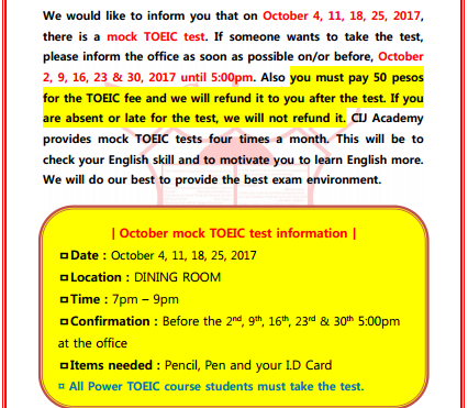 LỊCH THI THỬ TOEIC THÁNG 10